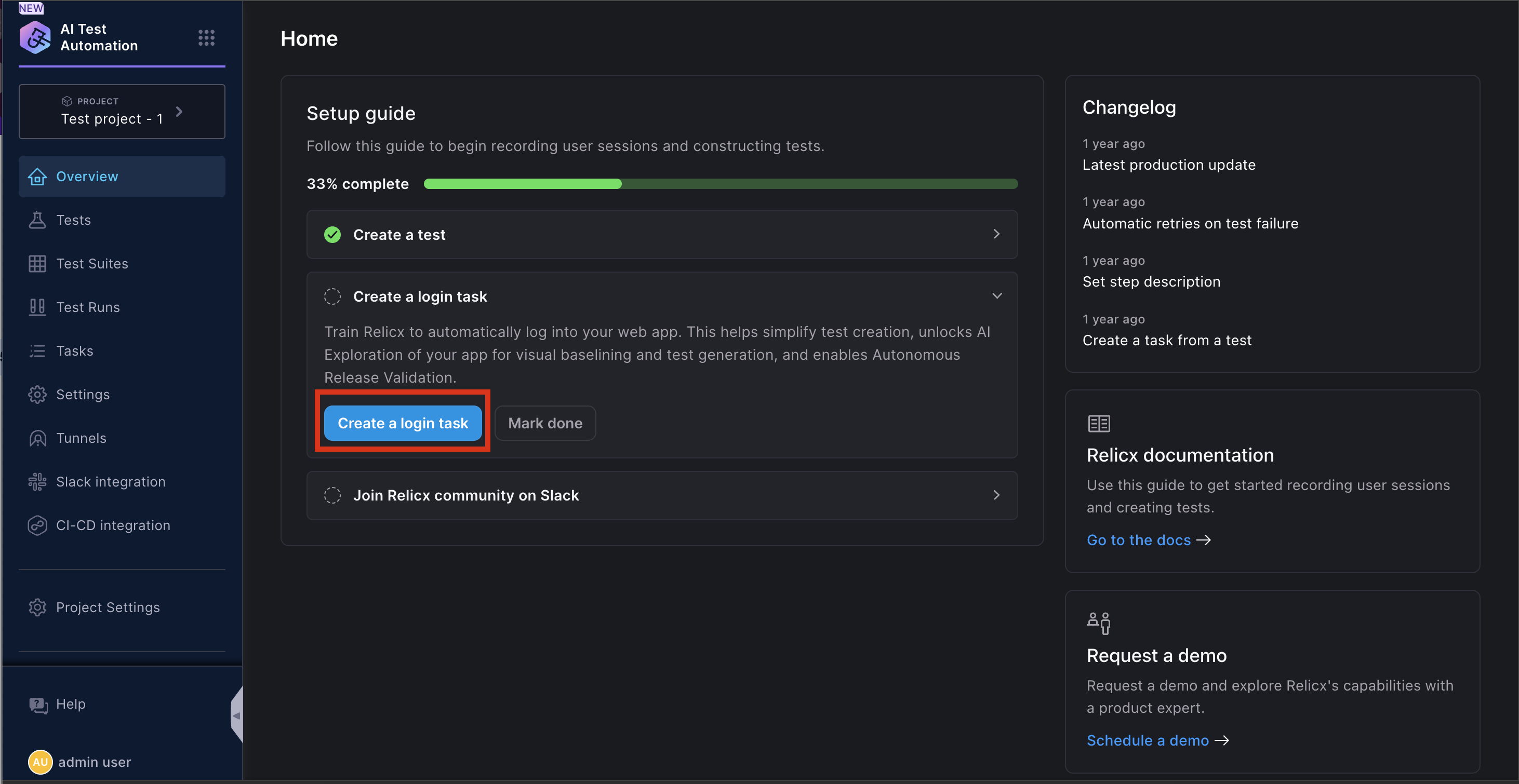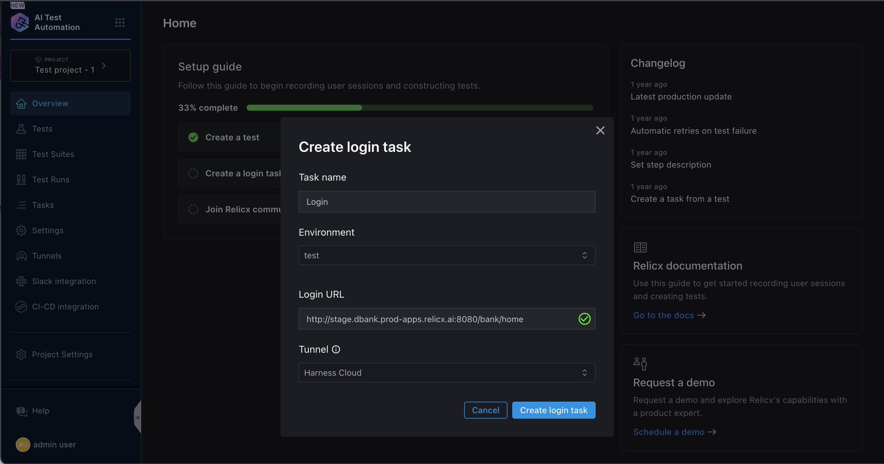 If your application requires authentication, you may wonder how can you avoid adding the login steps into your test every time. Harness AI Test Automation provides the ability to add a login task that is automatically called when a test is either created or executed. You just need to create it once and add your login credentials;