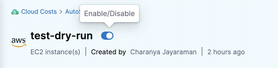 You can enable or disable an AutoStopping rule from the Summary of Rules Page or from the details page of a selected rule.