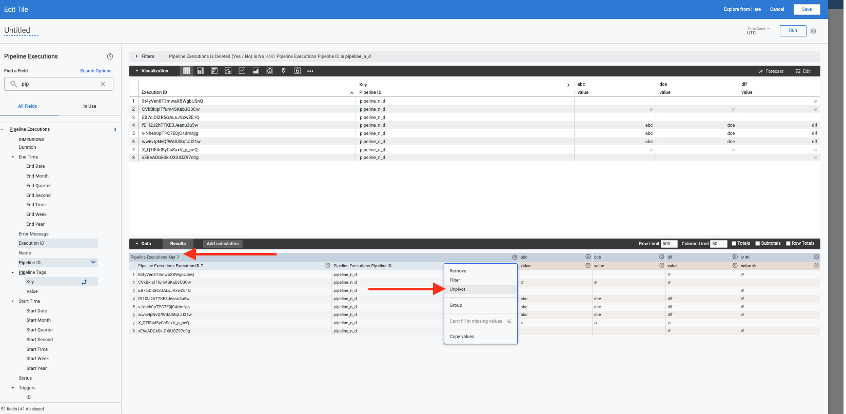 This explore can be used to visualize CD data related to pipeline executions. Each explore has a set of views. The views present in this explore are: