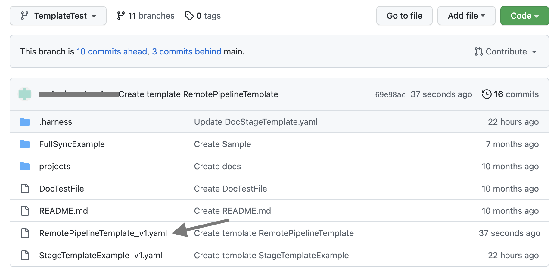 • Remote Pipeline Template and the Pipeline exist in the same Git repo.
