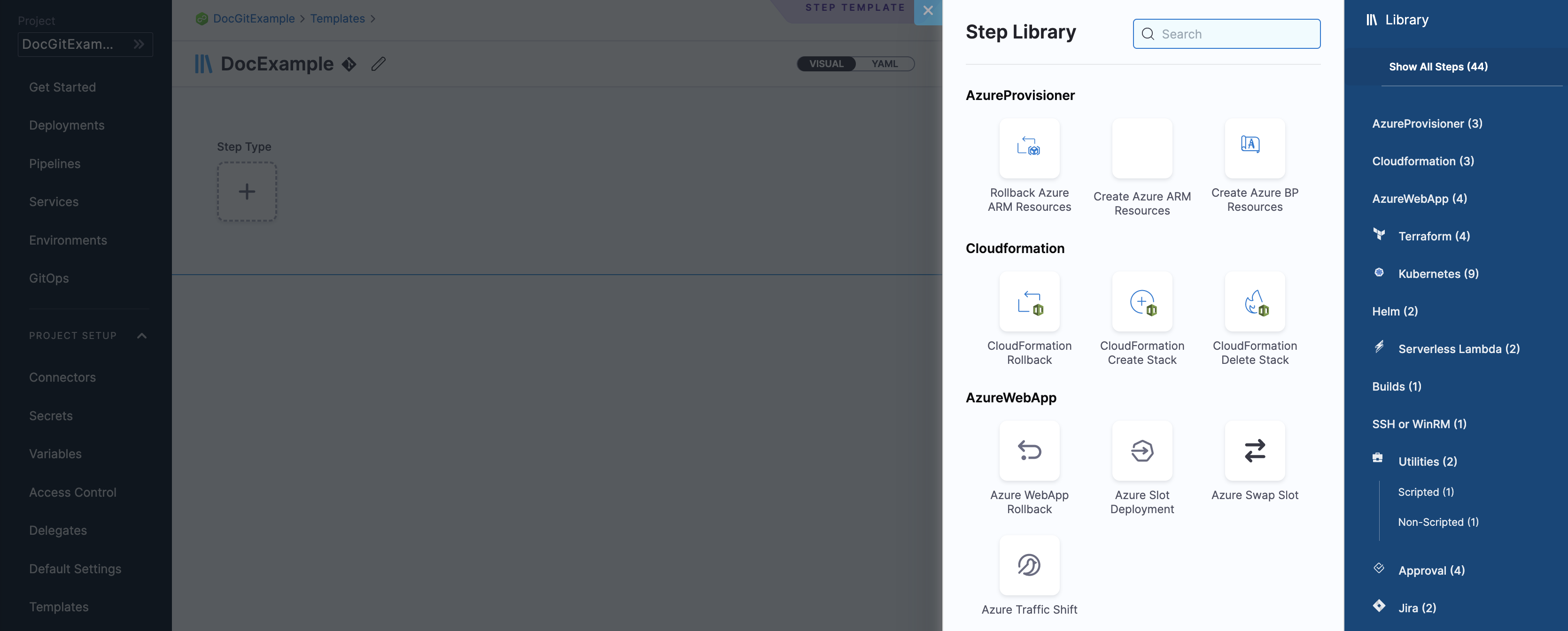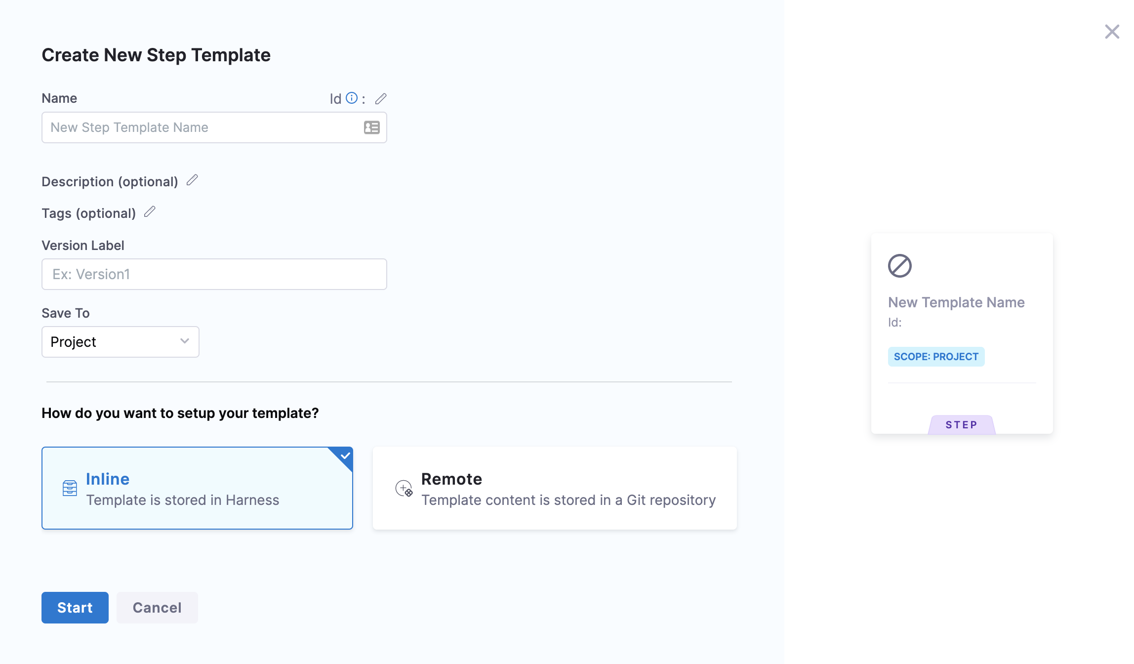 You can create a step template from your account, org or project. This topic explains the steps to create a step template from the project scope.