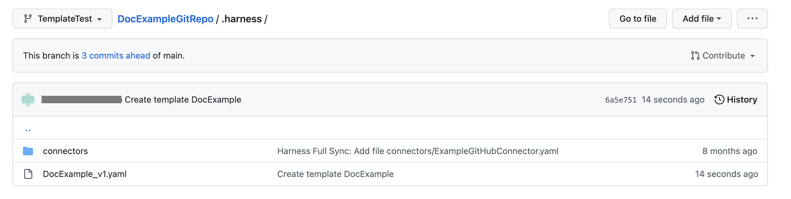 Harness lets you save your templates in Git repositories.​ For example, if you have a core Step that you want all of your Pipelines to use, you can put the template in a core repo and then refer to it. Now you can reuse this step template in multiple pipelines.