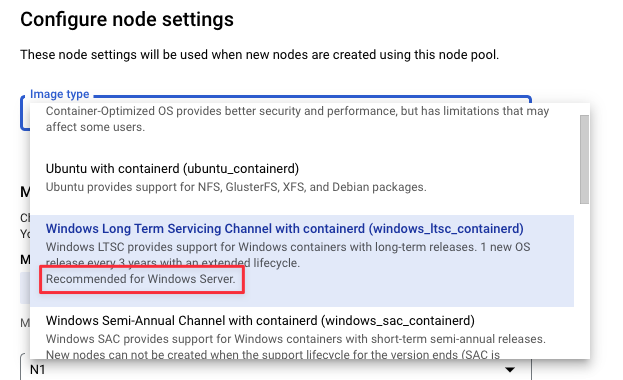 • GKS: Use the recommended image type for Windows Server 2019 or 2022.