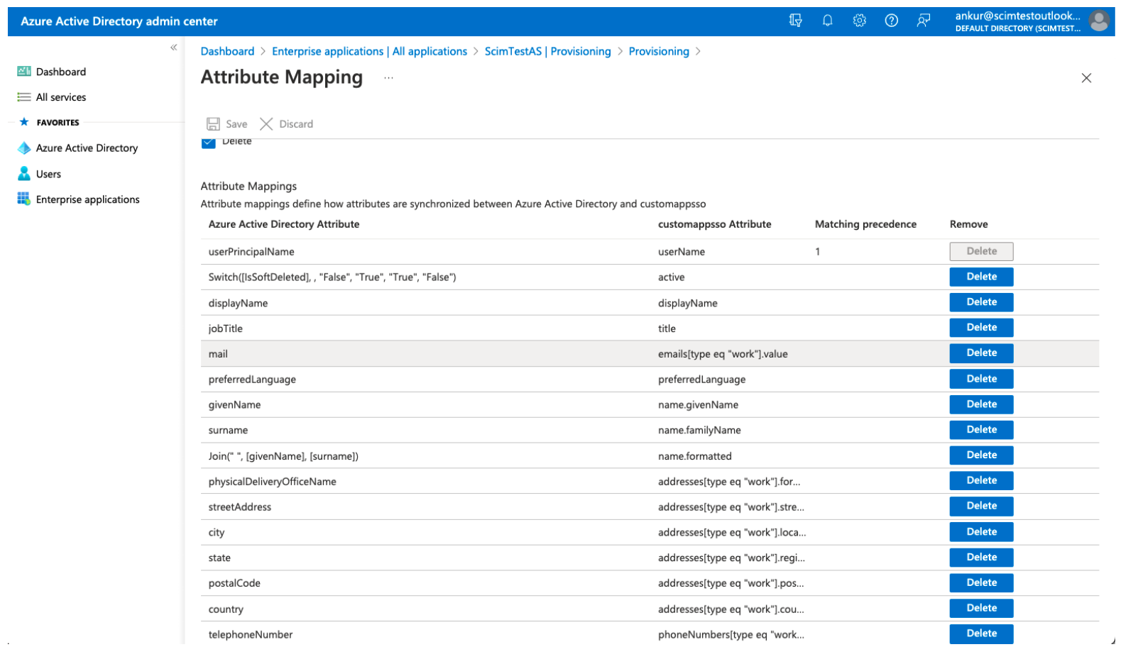 Click the attribute mail and change the source attribute to