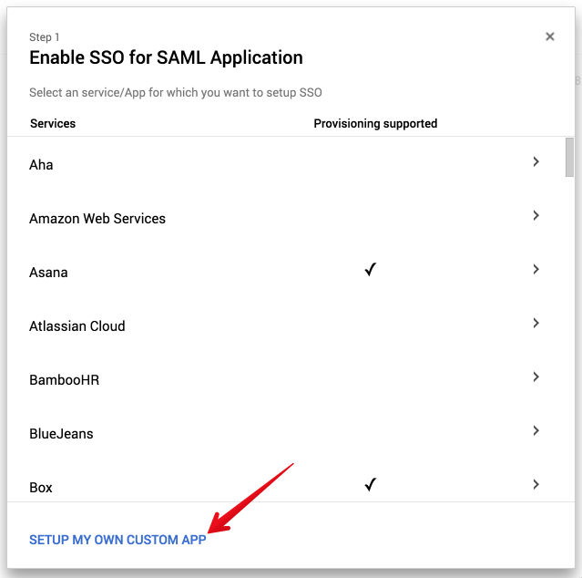Click Setup my own custom app.