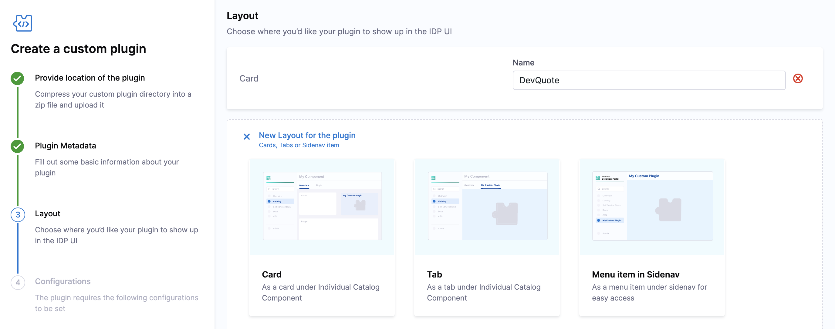 - Now click next and Add Layout for your plugin. You have 3 categories in this and the layout is sourced from