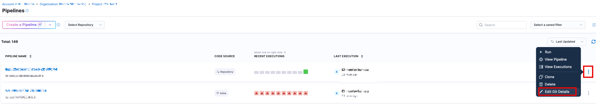 at the side of the appropriate pipeline. SelectEdit Git Details