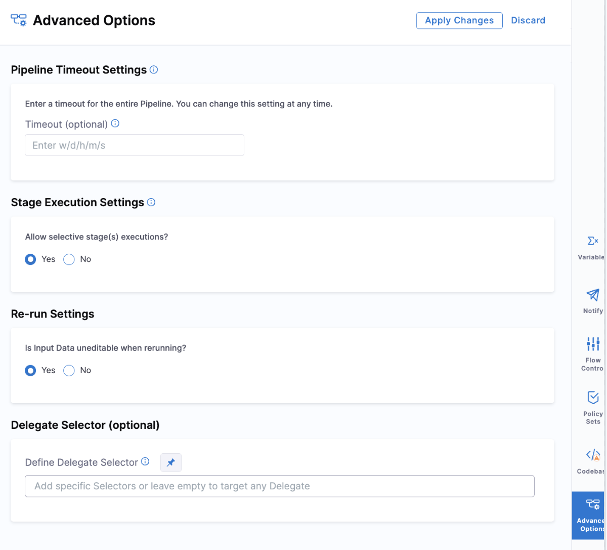 Select Advanced Options in Pipeline Settings In the pipeline settings, click on Advanced Options.