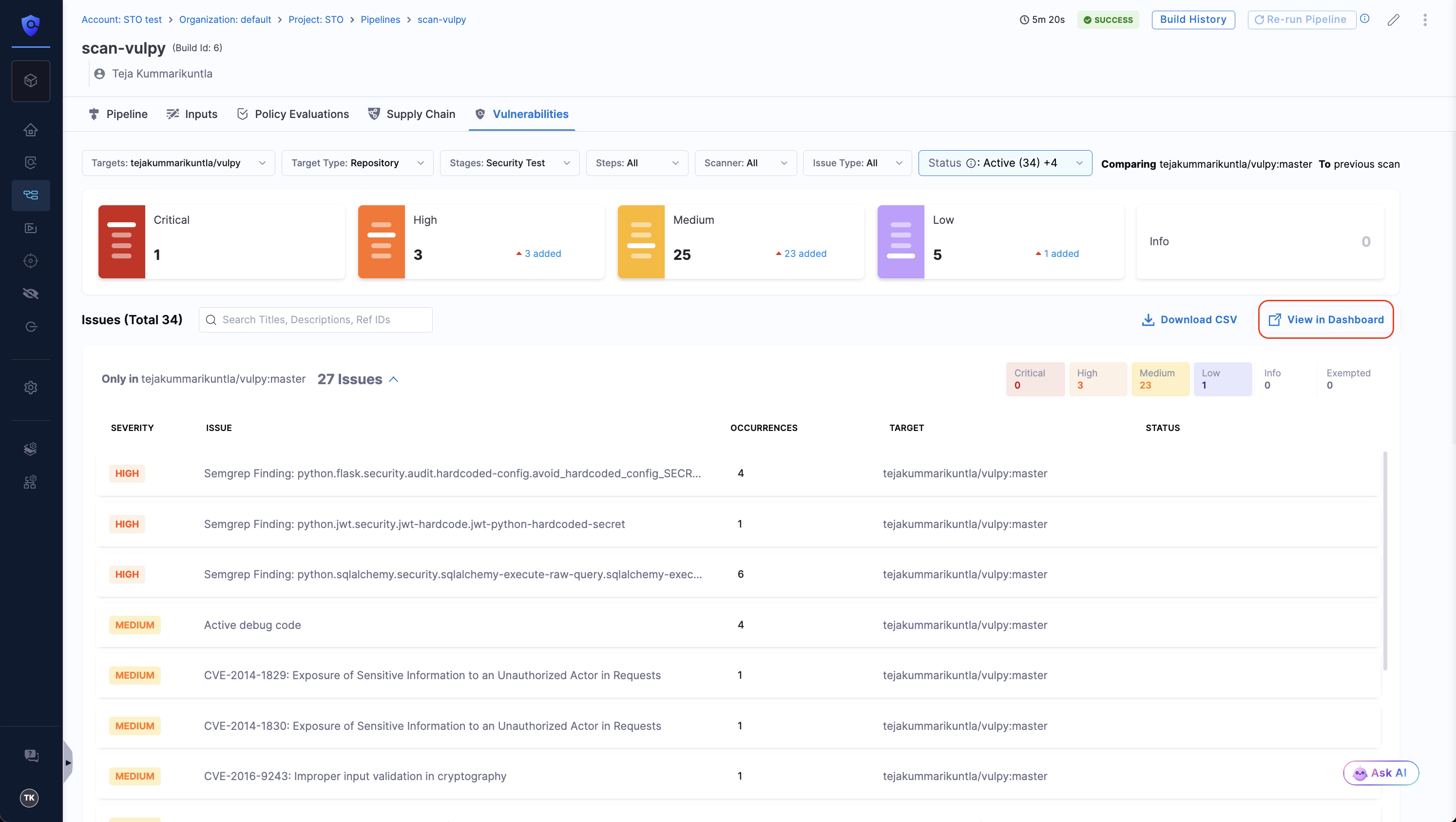 enabled, you can also access the dashboard with all your results by clicking on the View in Dashboard option in the Vulnerabilities tab.View in Dashboard option in Vulnerabilities tab