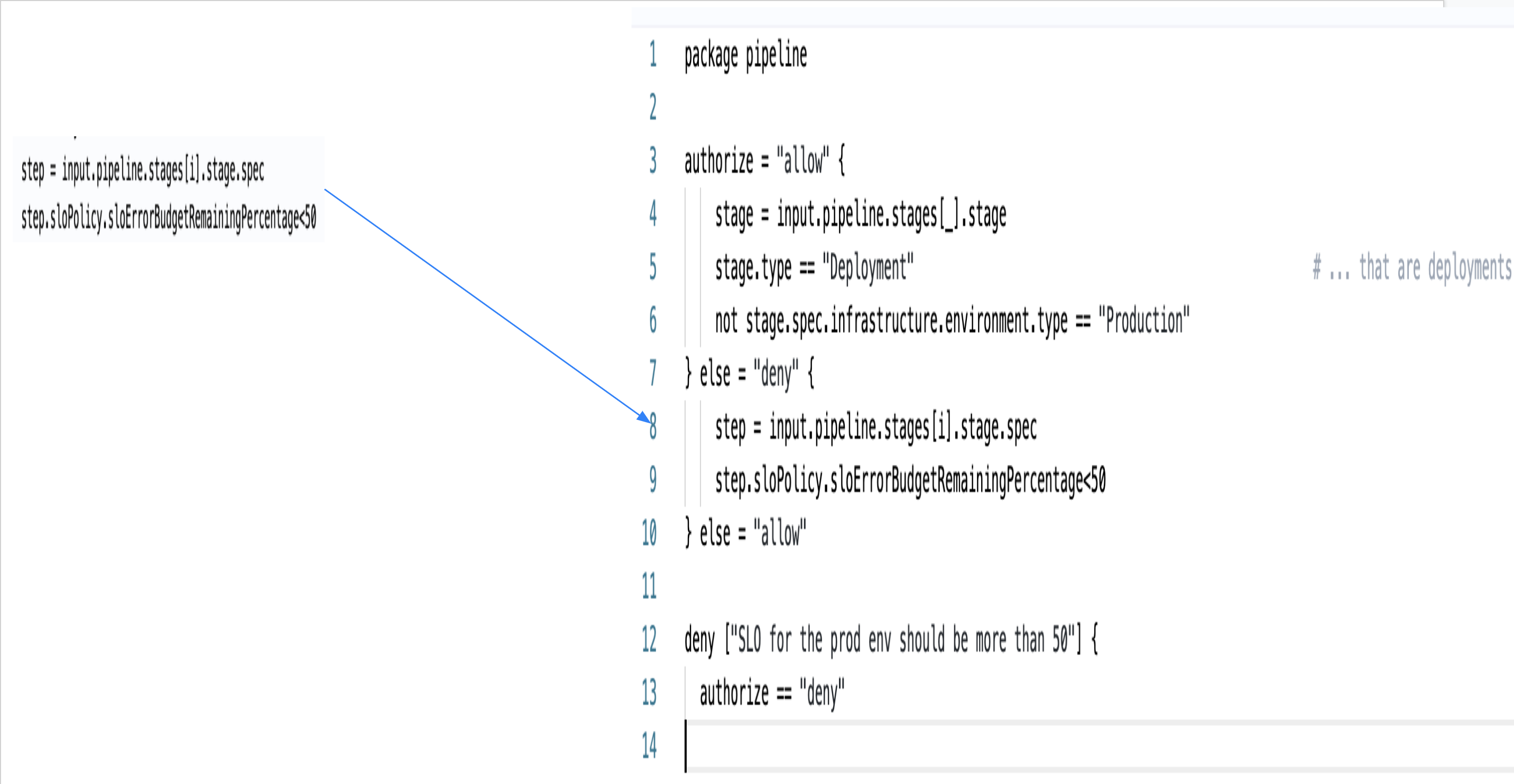 SLO-driven governance policies ensure that Harness entities like SLOs (service level objectives) and Error Budgets meet specific compliance requirements when specific events happen (On Save, On Run, etc). These policies prevent Pipelines from deploying if: