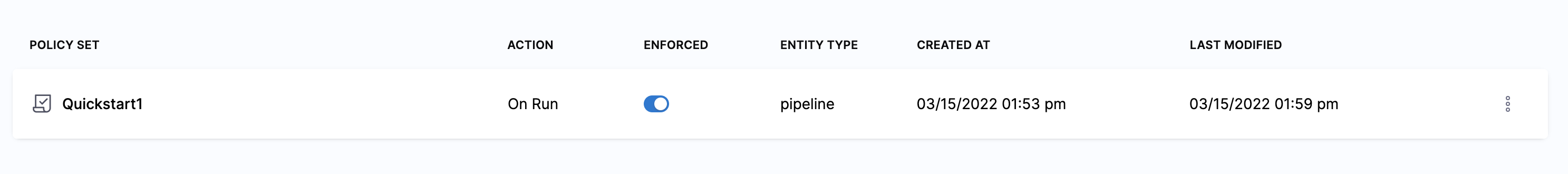 When you create Policy Sets they are applied to all matching entities (for example, Pipelines). Be careful that you do not create a Policy Set that might impact existing Pipelines unintentionally.