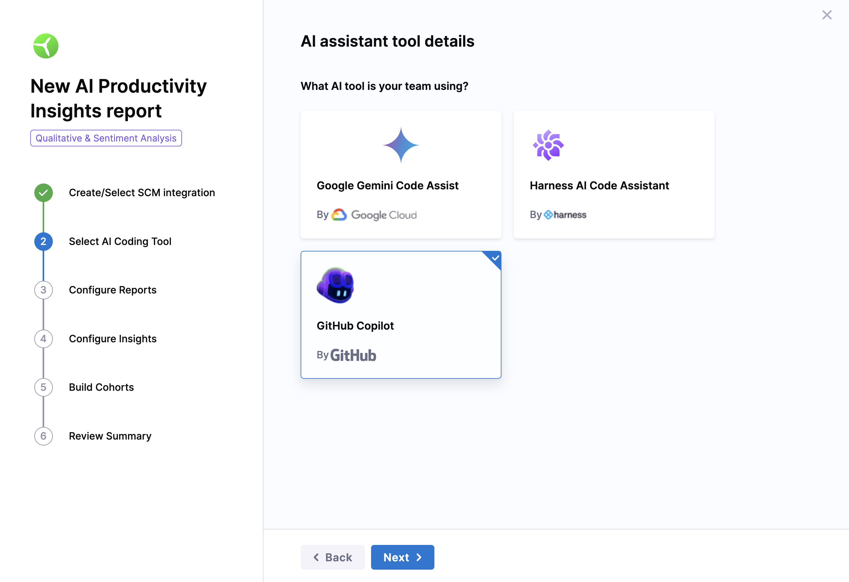 - Using AI Tools: Developers actively using AI tools like GitHub Copilot or Harness AI Code Assistant.