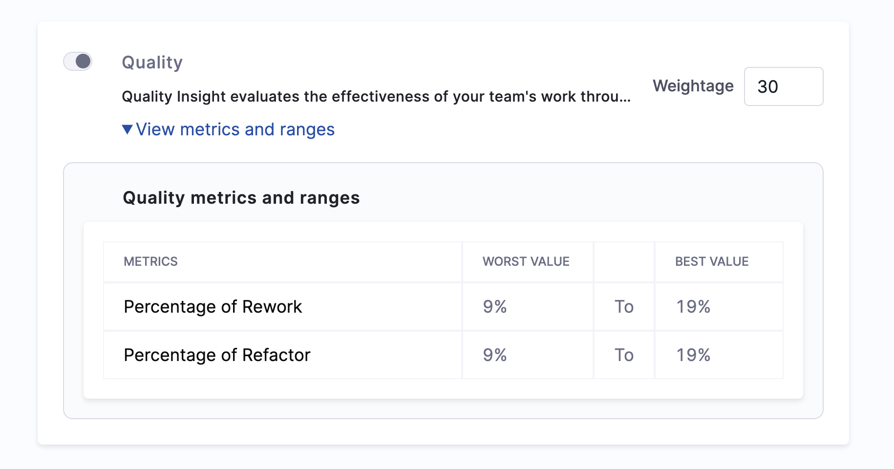 Configure categories to reflect your priorities. Assign a total weight of 100% across all categories. The assigned weight will be considered while calculating the category scores as well as the overall productivity boost.