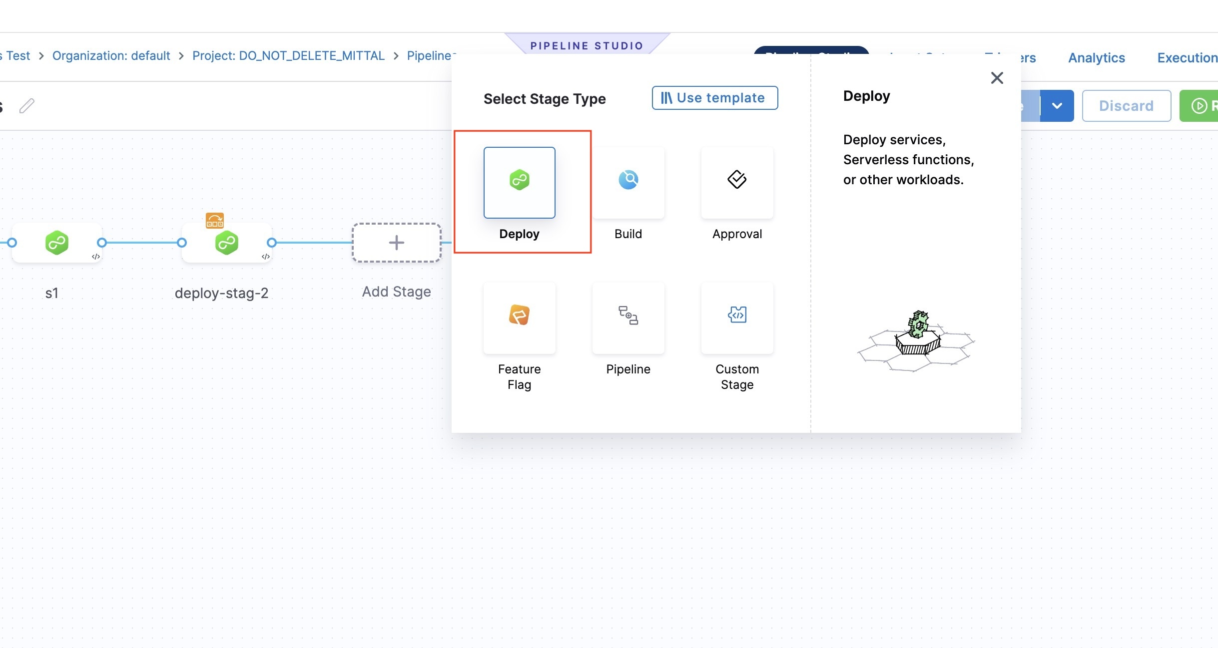 • In your pipeline ensure that you’re using the Deploy Stage in Harness CD for artifact deployment.