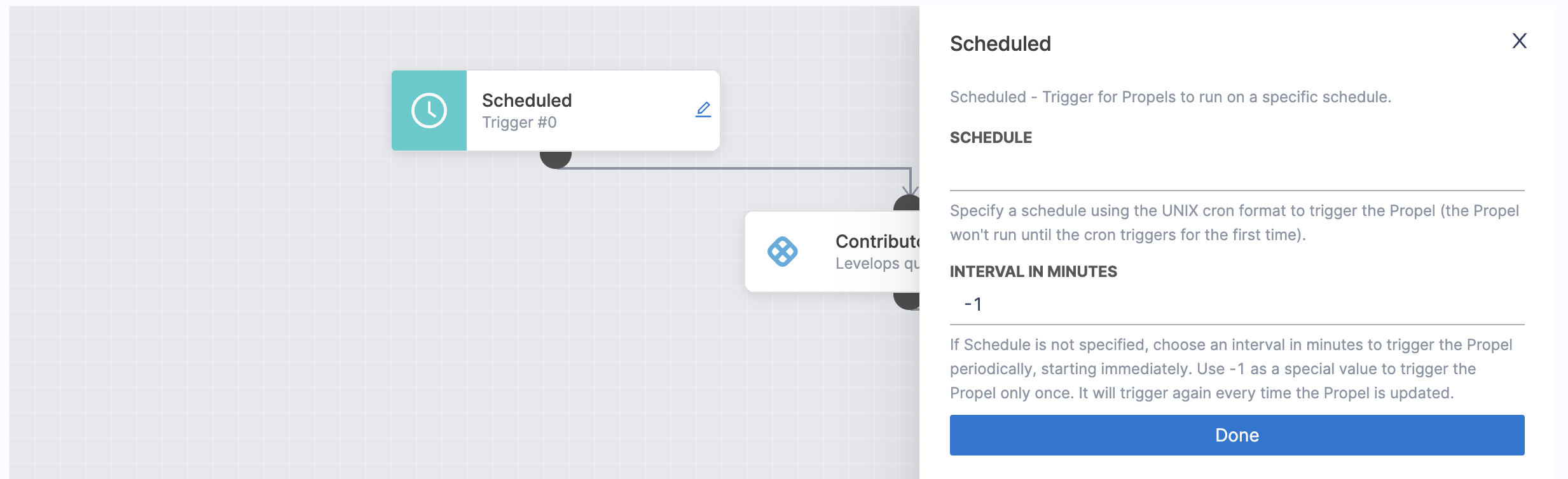 - Choose Scheduled as the trigger type for the Propel.