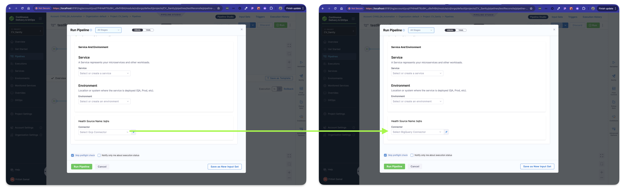 Repo details is showing in background ,when run pipeline using inputset selection (PL-26706)